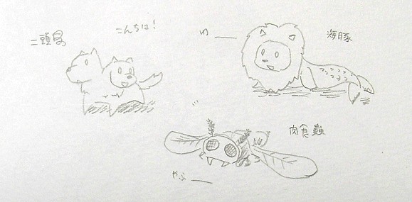 二頭戌(ケルベロス)とか漢字書けなくてごまかしてますね。