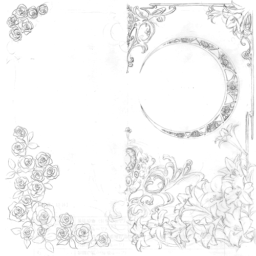 その他、様子を見ながら薔薇を増量したり、適当にごまかしていた装飾の細部をペン入れ前にもう一度下描きし直したり。