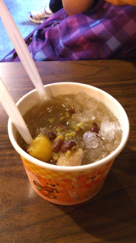 この後サービスで、杏仁寒天やお芋やあんこが入ったデザートがボウルいっぱい来ました。
