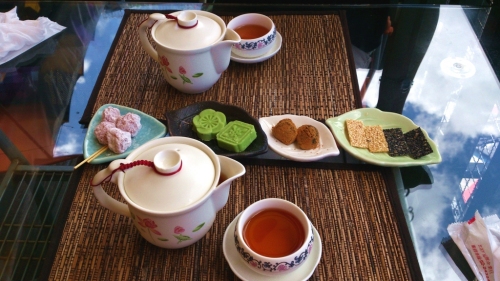 お茶はおかわり自由、お茶菓子がついて300元(日本円でおよそ900円)と流石の観光地相場ですが、それだけの価値のある素敵なひとときを過ごせました。